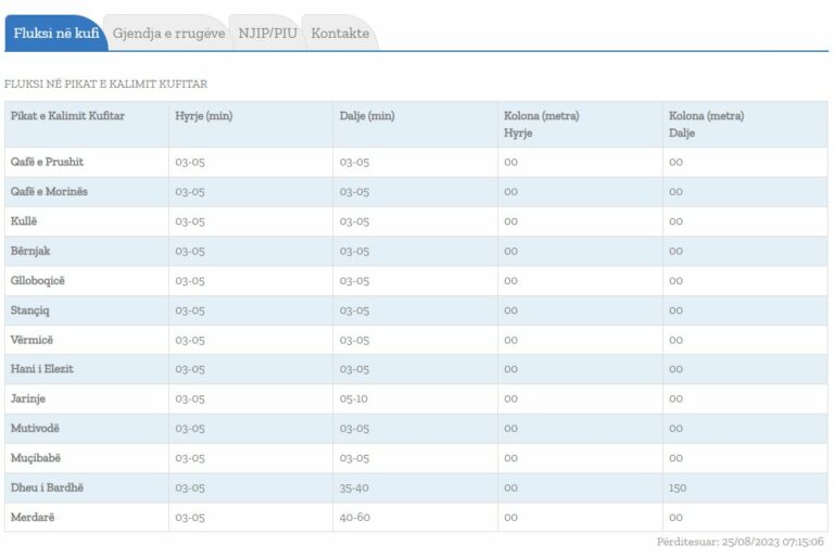 Ndërkaq, në dalje të pikës kufitare te Dheu i Bardhë pritjet janë deri në 40 minuta, ndërkaq kolona në këtë pikë kufitare është 150 metra.