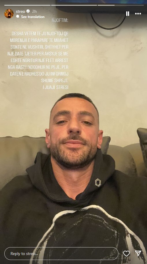 Në reagimin e tij të fundit, Stresi ka njoftuar në profilin e tij në Instagram se Policia e Kosovës ka lëshuar një urdhër arresti ndaj tij për lidhje me këtë incident.