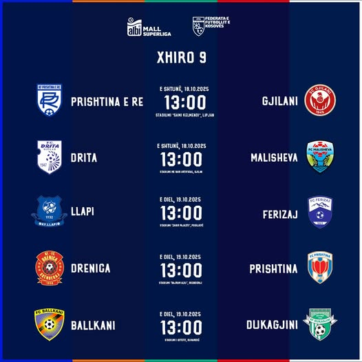 Sot, Prishtina e Re e pret në Lipjan Gjilanin, kurse kampionia në fuqi, Drita do të jetë nikoqire e Malishevës.