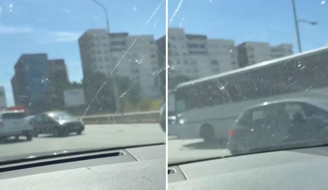 Si pasojë e aksidentit, shihet që ka edhe kolona në këtë pjesë të rrugës.