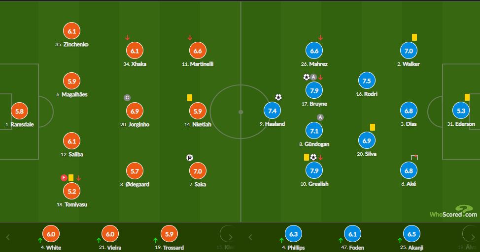 Rezultati përfundimtar i këtij takimi ishte 1 me 3, teksa “Qytetarët” pas këtij trepikëshi i barazojnë topçinjtë në tabelën e klasifikimit dhe, gjithashtu iu ‘heqin nga duart’ kryesimin e Premier League.