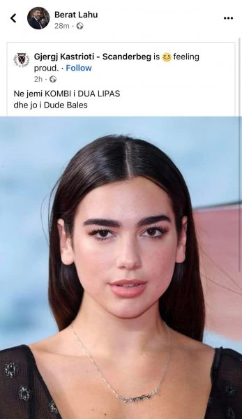Në atë postim thuhet “Ne jemi kombi i Dua Lipës e jo i Duda Baljes”.