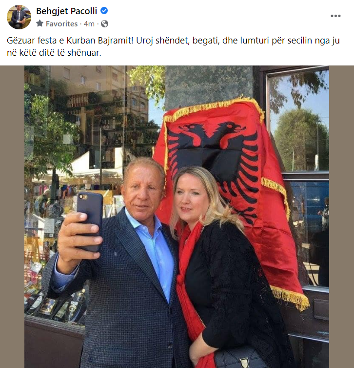 Kreu i Aleancës Kosova e Re, Behgjet Pacolli, ka uruar festën e Kurban Bajramit, duke publikuar edhe një foto me bashkëshorten e tij.