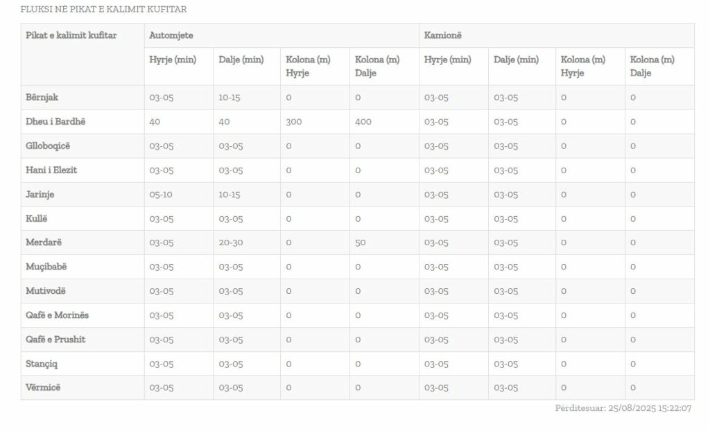 Përderisa te Dheu i Bardhë pritej deri në 2 orë, tanimë me përditësimin e ri të të dhënave, bëhet e ditur se pritjet vijojnë në 40 minuta.