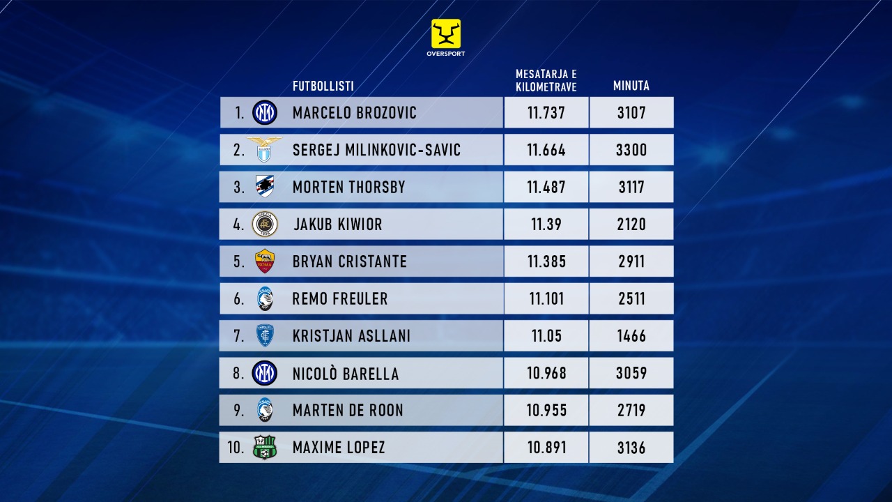 Kristjan Asllani është në listën e 10 lojtarëve me më shumë kilometra të bërë në ndeshjet e Serie A.