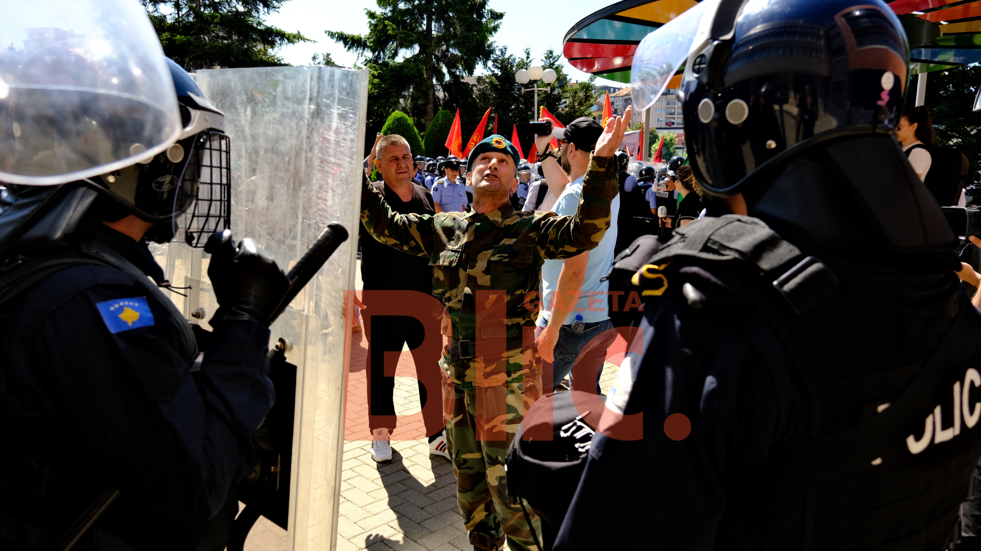 Një prej veteranëve të Ushtrisë Çlirimtare të Kosovës ka ngritur flamurin e UÇK’së para ndërtesës së Kuvendit të Kosovës. I njëjti pasi ka ngr...