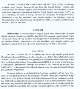 “Në këtë rast nuk ka pasur shprehje fyese ose denigruese nga ana e kandidatit në fjalë”, duke e shpallur ankesën e PDK-së si të pabazuar”.