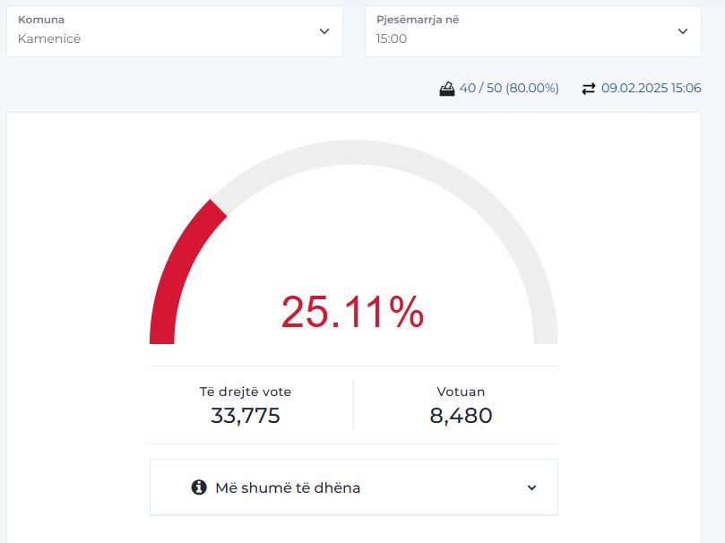 Në këtë komunë kanë të drejtë vote 33.775 persona, teksa deri në orën 15:00 kanë votuar 8480 persona, shkruan GazetaBlic.