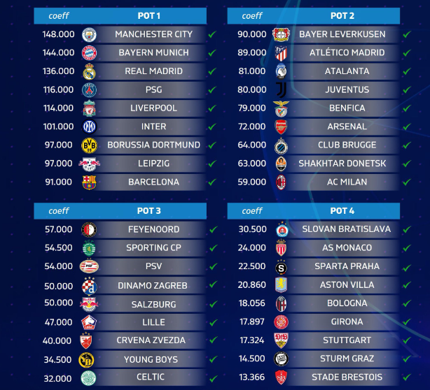 Këto janë të gjitha skuadrat e kualifikuara në Ligën e Kampionëve.