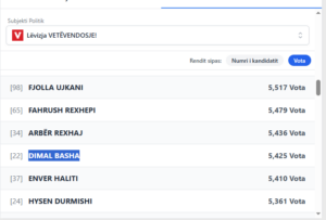Aktualisht, ai renditet i 40-ti në listën e kandidatëve më të votuar të Lëvizjes Vetëvendosje.