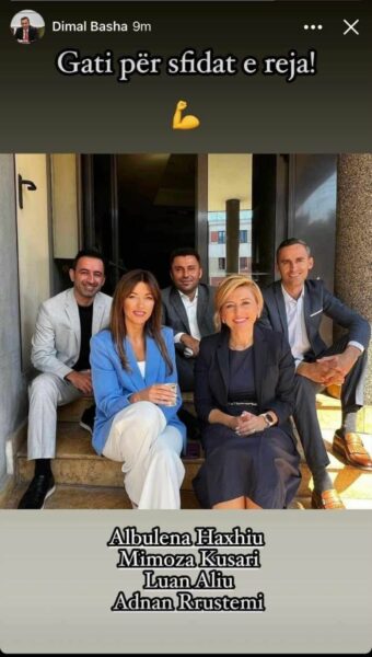 Deputeti i VV-së, Dimal Basha, ka publikuar një fotografi me Shefen e Grupit Parlamentar të VV-së, Mimoza Kusari-Lila, Ministren e Drejtësisë Albulena Haxhiu dhe deputetët Adnan Rrustemi e Luan Aliu.