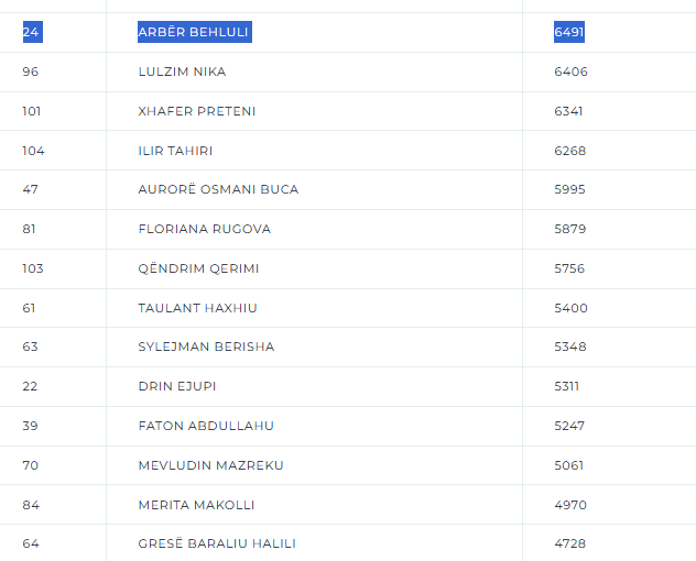 Behluli i cili kishte numrin 24 në listën e PDK-së, nga numërimi i mbi 94 përqind të votave, arriti deri më tani t’i marrë vetëm 6 mijë e 491 vota, vota këto të pamjaftueshme për të siguruar një ulëse në Kuvendin e Kosovës.