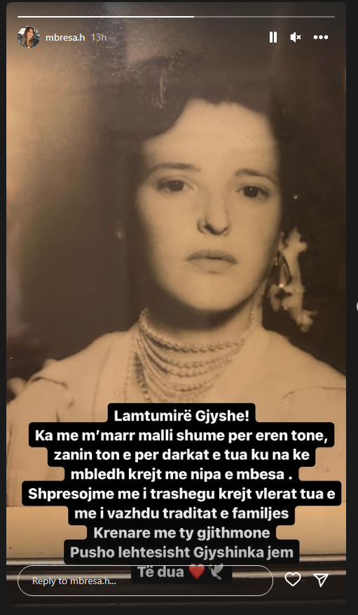 Ajo, me anë të një story në Instagram, ka theksuar se është në mërzi për shkak se i ka vdekur gjyshja.