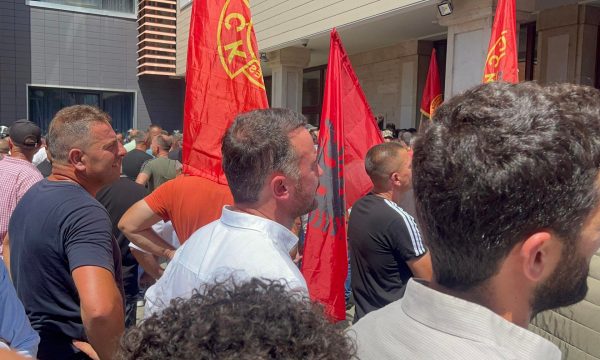 Molliqaj është fotografuar duke qëndruar pranë pjesëmarrësve tjerë, të cilët po kërkojnë të inkuadrohen në ngritjen e pagës minimale.