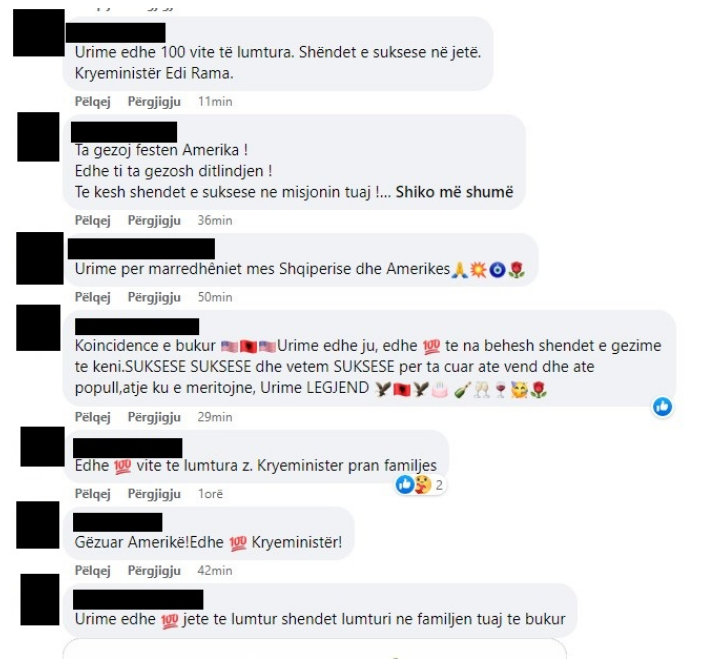 Në postimin e tij për pavarësinë e Shteteve të Bashkuara të Amerikës, shumë ndjekës e uruan Ramën për ditëlindje, duke i shkruar fjalët më të mira.