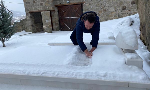 Përmes disa fotografive të publikuara në profilin e tij në Facebook, ministri shihet se gjatë vizitës ka pastruar nga bora varrin e heroi kombëtar.