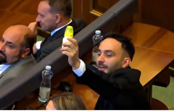 Deputeti i VV-së, Agim Bahtiri, sot ia çoi një biberon të mbushur me qumësht deputetit të LDK-së, Paris Gurit.