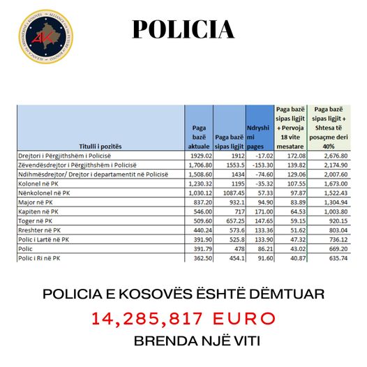“Dje sqaruam dëmin që iu bë personelit shëndetësor. Por, qeveria Kurti me mosmiratimin e Ligjit të Pagave u ka shkaktuar dëm të gjithë sektorëve në vend. Ata që janë përgjegjës për rendin dhe qetësinë e shtetit tonë, Policia e Kosovës, është dëmtuar mbi 14 milionë euro për një vit. Përderisa kjo qeveri po mburret se janë rritur të hyrat buxhetore, përse po i varfëron policët tanë?”, ka shkruar Haradinaj.