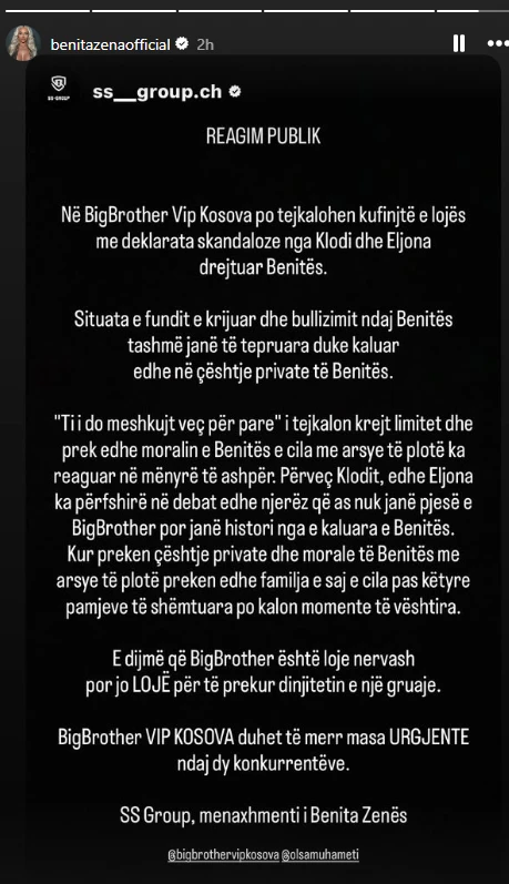 “I do meshkujt për para”, reagon ashpër menaxhmenti i Benita Zenës