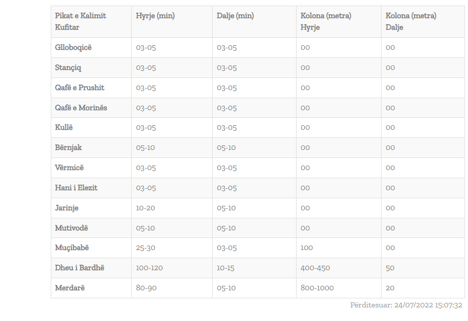 Bazuar në të dhënat e fundit të përditësuara nga Ministria e Brendshme e Kosovës, pikëkalimet kufitare në Merdare dhe tek Dheu i Bardhë janë më të ngarkuarat me pritje për të hyrë në Kosovë.