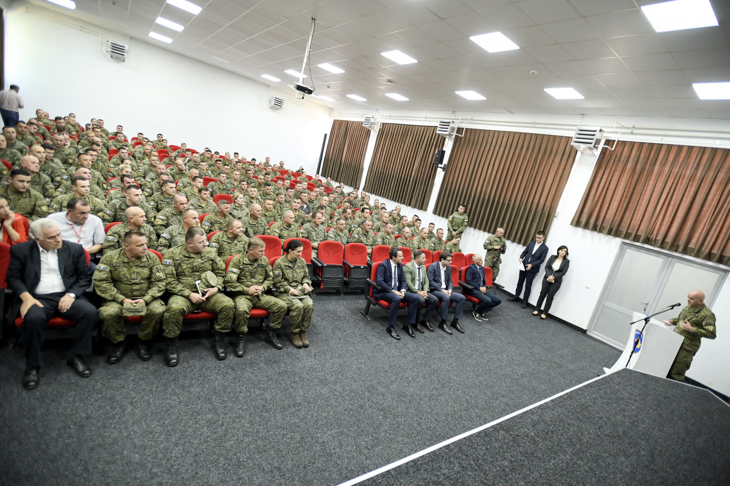 Ndërkaq në kazermën “Evropianët e Rinj”, përveç zëvendës Komandanti i FSK-së, Gjeneralmajor, Enver Cikaqi, kryeministri Kurti u prit edhe nga koloneli i FSK-së, Shaip Haziri. Para ushtarakëve të pranishëm, kryeministri Kurti tha se Forca e Sigurisë së Kosovës po vazhdon të zhvillohet, modernizohet dhe të ndërveprojë me partnerët e saj.