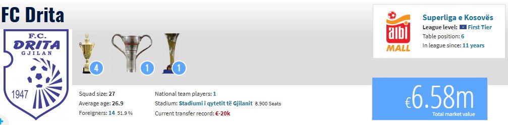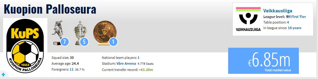 Në aspektin financiar, vlera e skuadrës finlandeze është 6.85 milionë euro, shumë e ngjajshme me atë të skuadrës tonë kosovare, e cila ka vlerë momentale 6.58 milionë euro.