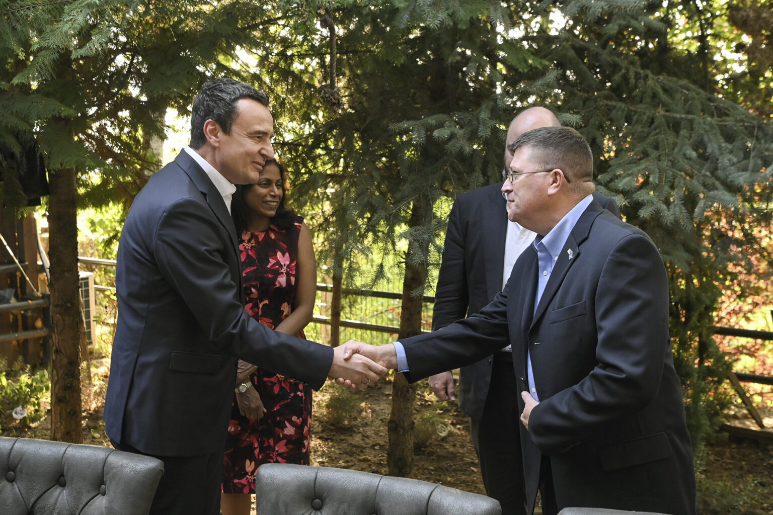 Kryeministri në detyrë i Republikës së Kosovës, Albin Kurti takoi sonte zëvendësndihmëssekretarin amerikan të Mbrojtjes për Politika Evropiane dhe NATO, David Baker, të shoqëruar nga e ngarkuara me punë në Ambasadën e Shteteve të Bashkuara të Amerikës në Kosovë, Anu Prattipati, në një darkë pune të shtruar nga ministri në detyrë i Mbrojtjes, Ejup Maqedonci.