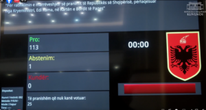 Parlamenti shqiptar miratoi këtë të enjte me 113 vota pro, një abstenim dhe zero kundër ratifikimin e marrëveshjes së pranimit të Republikës së Shqipërisë, e përfaqësuar nga kryeministri Rama, në Bordin e Paqes.