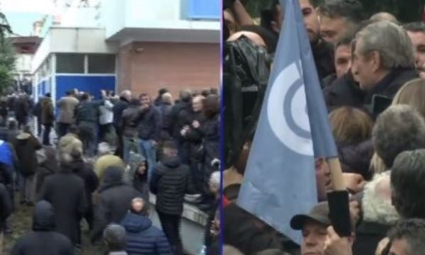 Një pjesë e protestuesve, mbështetës të Berishës para selisë blu kanë tentuar të thyejnë kamerat e vendosura në godinën e Partisë Demokratike.