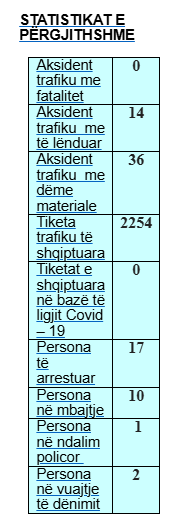 Gjatë këtyre 24 orëve, u regjistruan gjithsej 50 akisdente, 14 aksidente me të lënduar dhe 36 me dëme materiale.