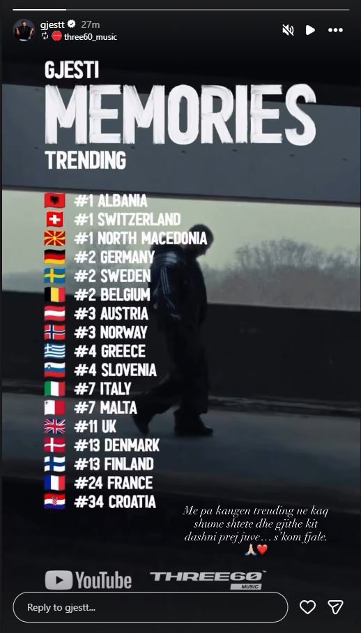 Ai në InstaStory ka paraqitur shtetet në të cilat kënga e tij është bërë “trending”.