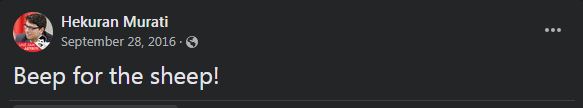 Kjo vërehet në llogarinë e tij, pasi në bazë të një fotografie të shpërndarë, postimi për veteranët është bërë më 1 tetor 2016, ndërsa dy postimet mes kësaj date janë “Beep for the sheep” me datë 28 shtator 2016 dhe tjetri që kishte të bëjë me Projektligjin për Trepçën e që mban datën 8 tetor 2016.
