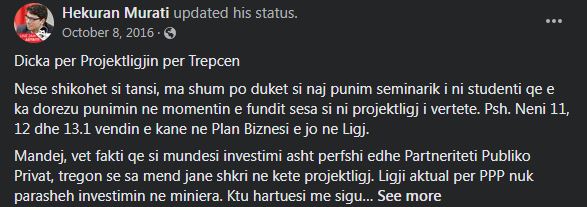 Ministri i Financave, Hekuran Murati, u bë pikë sulmi për kundërshtarët e tij politikë dhe jo vetëm, për shkak të një statusi në Facebook më 1 tetor 2016, që si duket tashmë është fshirë.