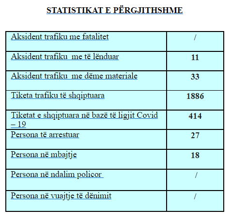 Policia gjithashtu në 24 orët e fundit ka dënuar 1 mijë e 886 shoferë të cilët nuk kanë respektuar rregullat e komunikacionit.