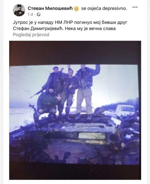 Për vrasjen e tij ka njoftuar në rrjete sociale miku i tij, Stevan Millosheviq. Dimitrijeviqi kishte qenë vullnetar në Lugansk që nga viti 2014 dhe ishte nderuar nga Rusia për kontributin e tij.