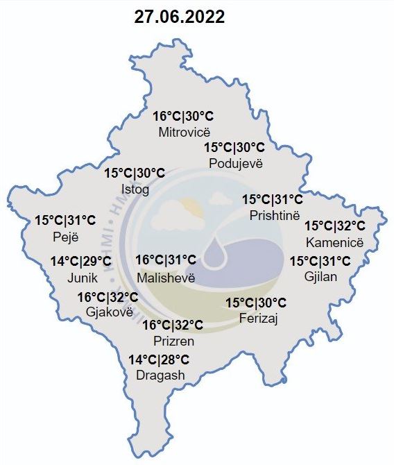 Instituti Hidrometeorologjik i Kosovës ka bërë të ditur se dita e sotme do të  të karakterizohet me mot të nxehtë.