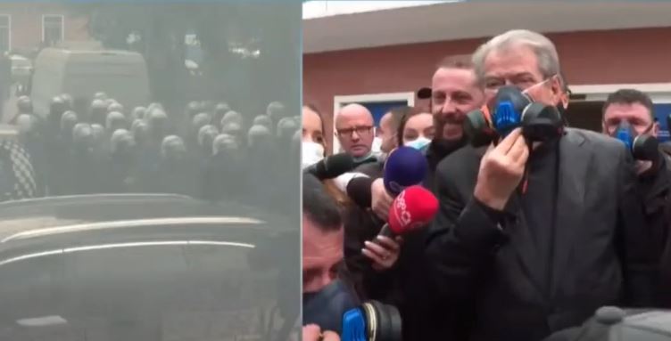 Gjatë protestimit, nga brenda selisë është hedhur gaz lotsjellës.