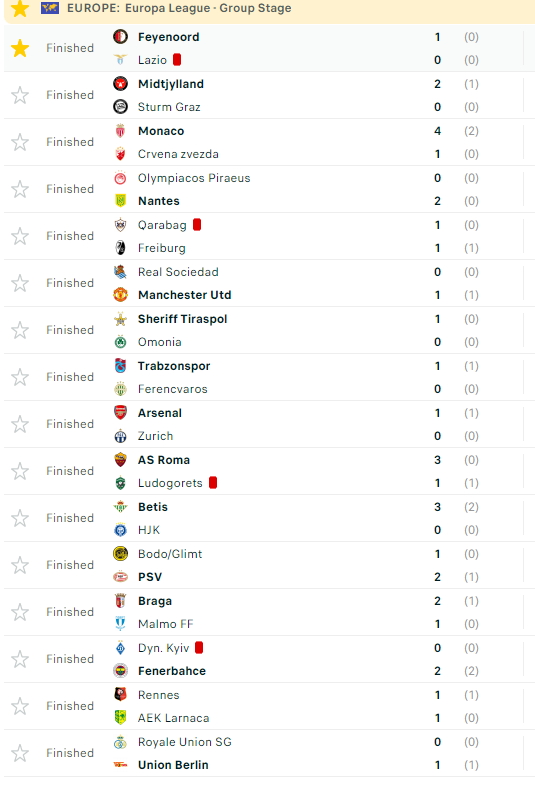 Arsenali triumfoi me rezultat 1 me 0 ndaj Zurich, kurse Betis siguroi fitore me rezultat 3 me 0 ndaj Helsinikit.