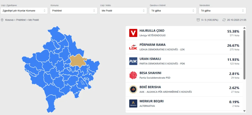 Kandidati për kryetar të kryeqytetit nga VV-ja, Hajrullah Ceku nga ka marrë 55.38% të votave të diasporës.