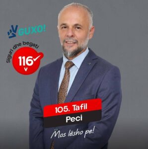 Në zgjedhjet parlamentare që do të mbahen nesër, pjesë e garës zgjedhore nga koalicioni VV-Guxo është edhe Tafil Peci, kandidat për deputet me numrin 105 në listë.