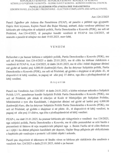 PZAP ia refuzon PDK’së kërkesën për rishikim të gjobës prej 4 mijë euro