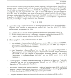 ‘‘Mjetet nga pika 2. të këtij vendimi transferohen në Ministrinë e Financave, Punës dhe Transfereve, me kod 201, në nën-programin “Thesari” me kod 11200, në kategorinë e shpenzimeve “Subvencione dhe Transfere”’’, thuhet në vendim mes tjerash.