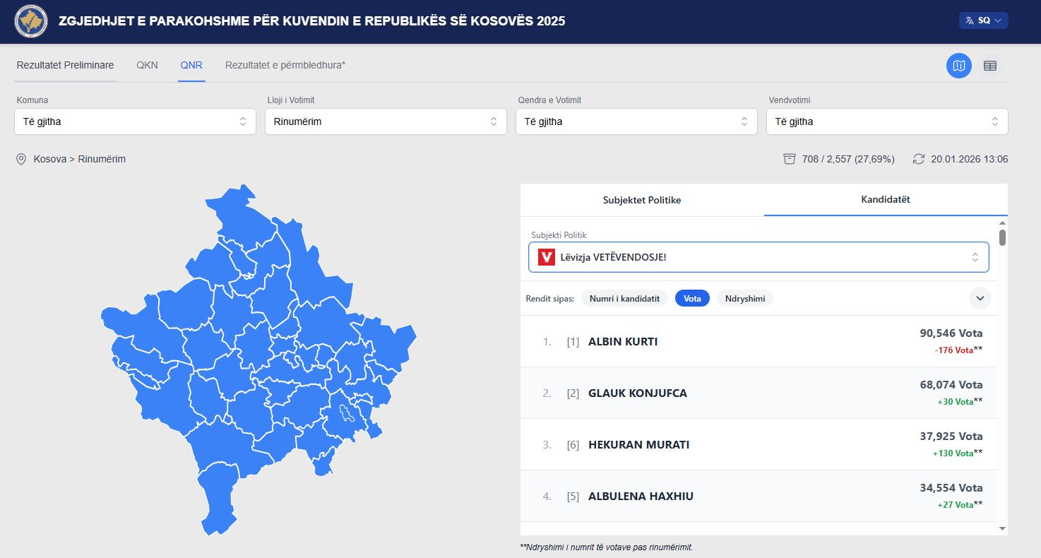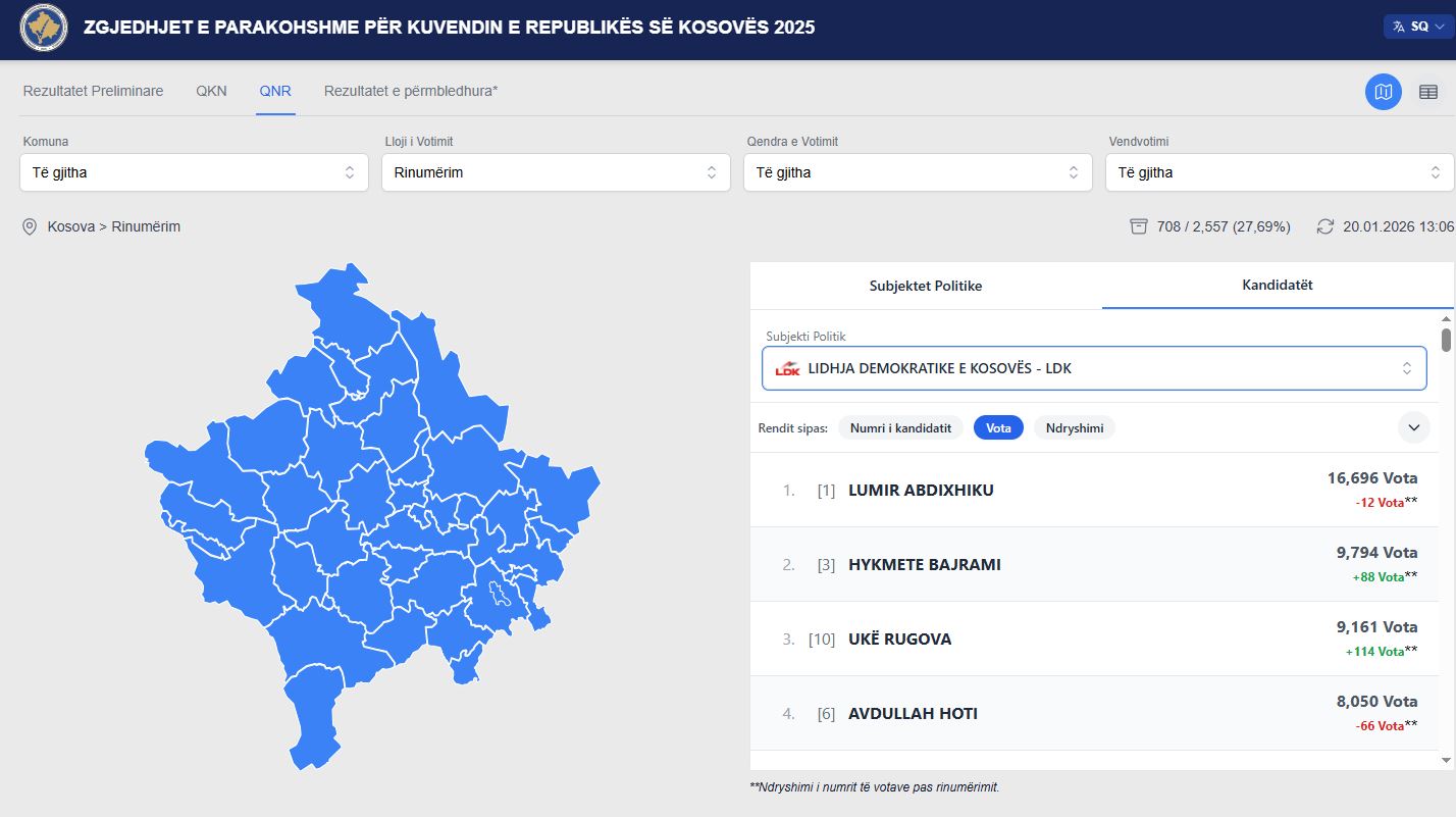 Kryetari Lumir Abdixhiku ka minus 12 vota, më pak ka edhe Avdullah Hoti, ndërsa Hykmete Bajrami, Ukë Rugova dhe Doarsa Kica – Xhelili, kanë më shumë vota nga rinumërimi.