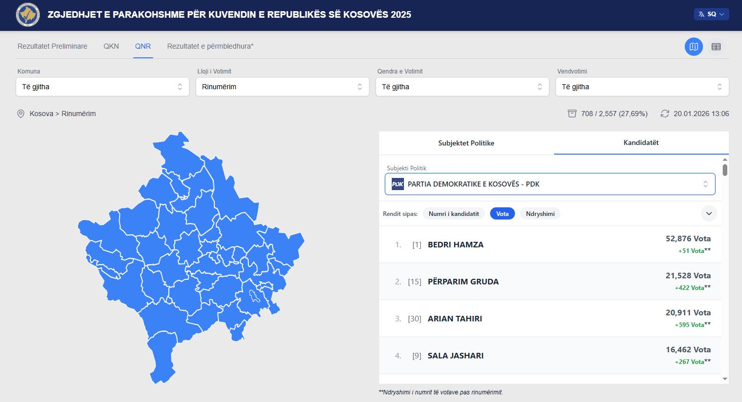 I pari i partisë, Bedri Hamza, deri më tash ka 51 vota më shumë, ndërsa Arian Tahiri, Përparim Gruda, Uran Ismaili e Sala Jashari kanë qindra vota shtesë.