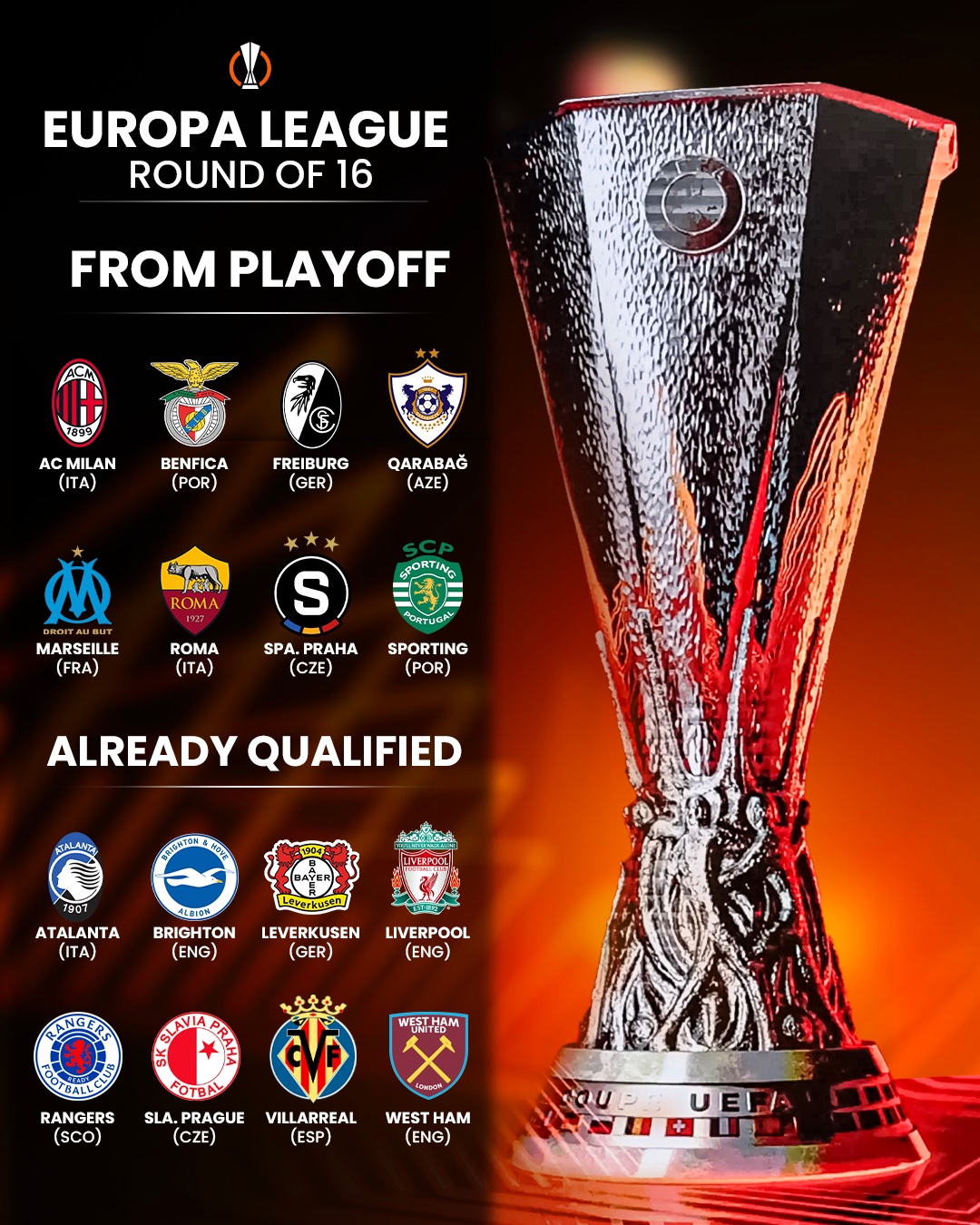 - Liverpool, West Ham, Villarreal, Brighton, Bayer Leverkusen, Rangers, Sparta Prahan, Atalanta