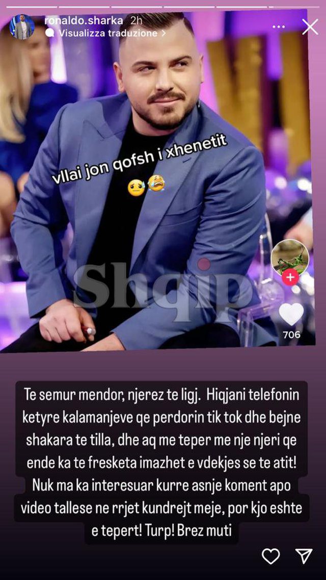 Mesazh ogurzi pë moderatorin Ronaldo Sharka në rrjete sociale.