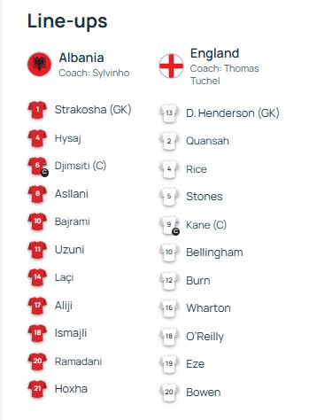 Shqipëria dhe Anglia ballafaqohen me fillim nga ora 18:00, në kuadër të kualifikimeve për Botërorin e 2026, shkruan GazetaBlic Sport.