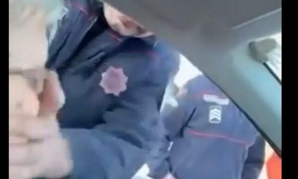 Pas kësaj duken disa persona me uniformë por me rroba civile dhe më pas njëri nga policët nxjerr me forcë shoferin nga makina duke bërtitur: “Lëre telefonin, lëre telefonin”.