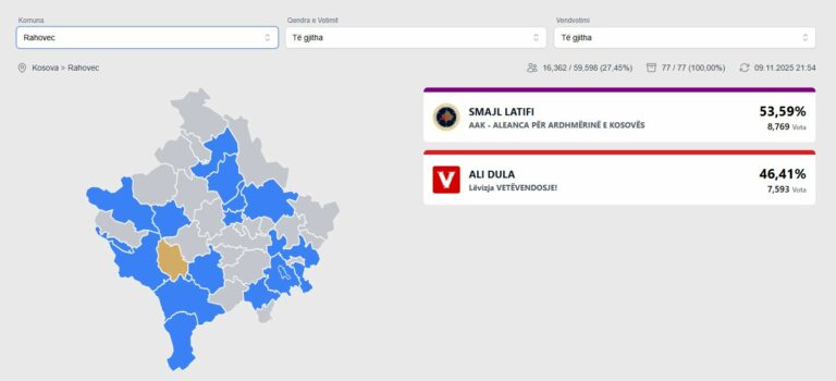 Bazuar në rezultatet preliminare të KQZ-së, Latifi rrëmbesu 53.59% të votave në këtë komunë.