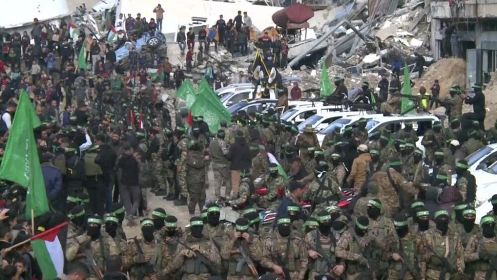 Dhe derisa pritet lirimi i pengjeve, në disa fotografi të publikuar nga BBC shihen shumë luftëtarëve të Hamasit që janë mbledhur në Sheshin e Palestinës, në qytetin e Gazës.